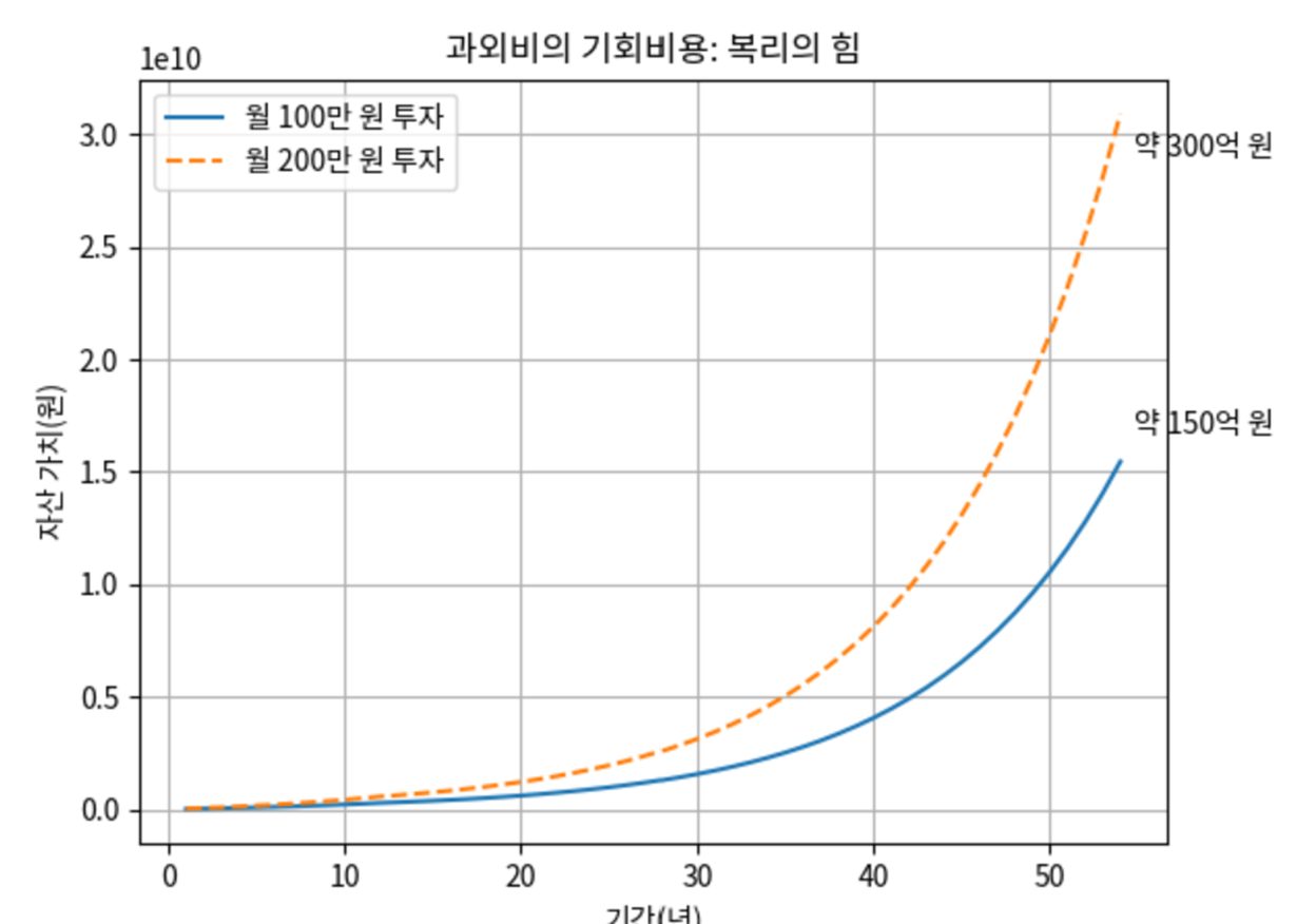 더 놀라운 사실은 그다음이다. 대학 입학 후 추가 투자 없이 이 돈을 아이가 60세가 될 때까지 42년 동안 그대로 두기만 해도, 복리의 마법은 이 자산을 ‘약 150억 원($11 Million 이상)’이라는 거금으로 불려 놓는다. 만약 교육열이 높아 매달 200만 원을 쏟아부었다면, 그 가치는 300억 원에 달한다. 국영수 문제 하나 더 맞히기 위해 지출한 비용이, 사실은 자녀의 완벽한 은퇴 자산과 수백억 원의 자산가로 살 기회를 빼앗고 있는 것일지도 모른다.